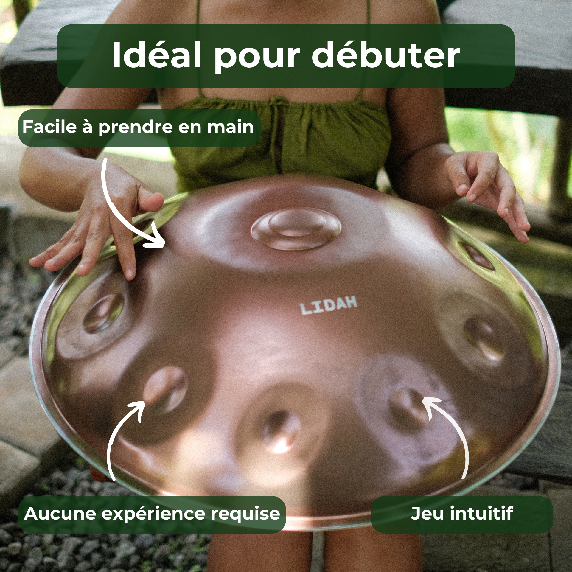 Lorsque vous commandez un handpan LIDAH, vous ne recevez pas seulement un instrument, vous recevez un package complet pour commencer votre voyage immédiatement :