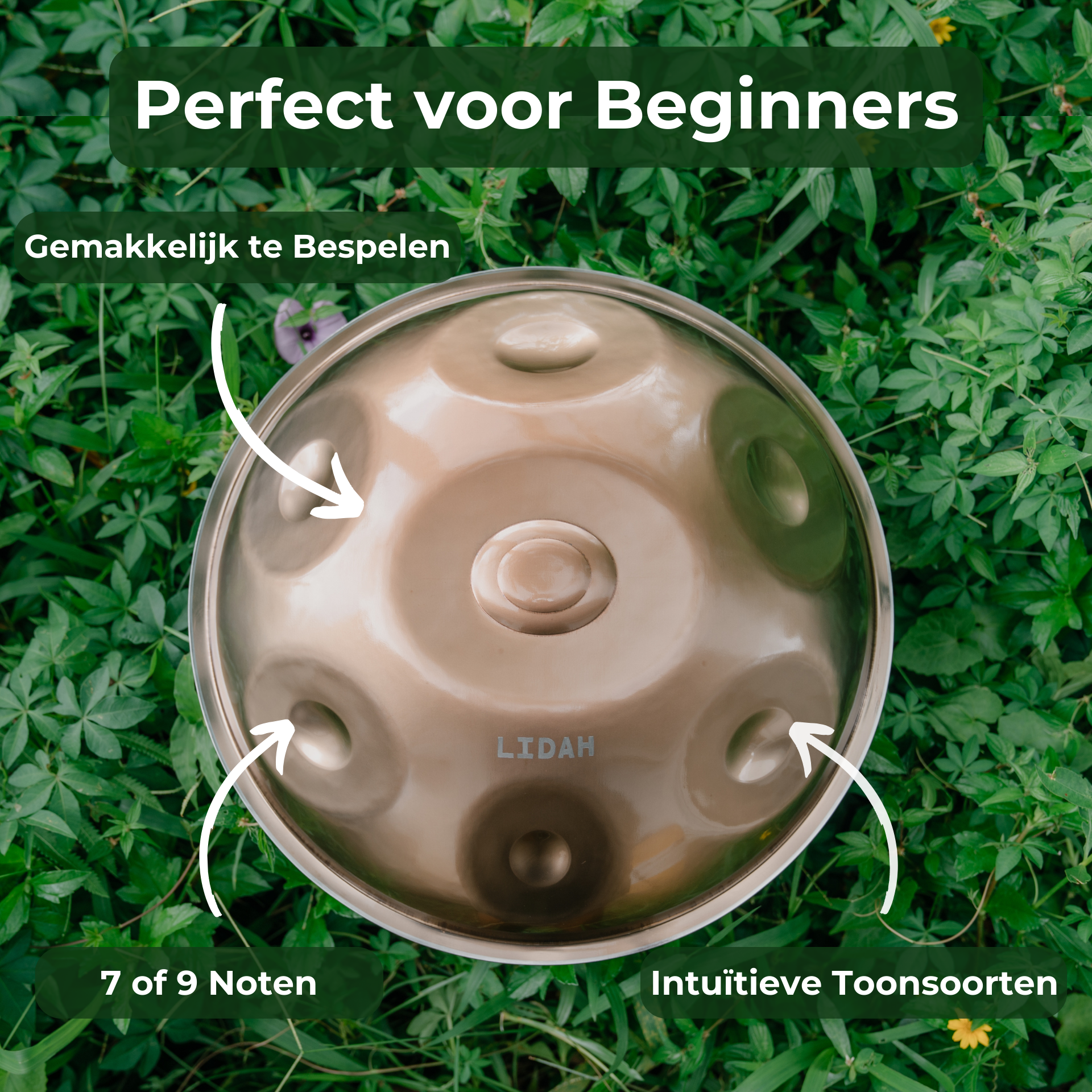 Ja, de Mini Handpan is een uitstekende keuze voor beginners. Door het kleinere formaat is de handpan voor veel mensen makkelijker vast te houden en comfortabeler om te spelen, vooral in het begin. Voor de meeste beginners zijn 7 noten meer dan genoeg om mee te starten, omdat dit een eenvoudige en intuïtieve speelervaring geeft zonder overweldigend te voelen.